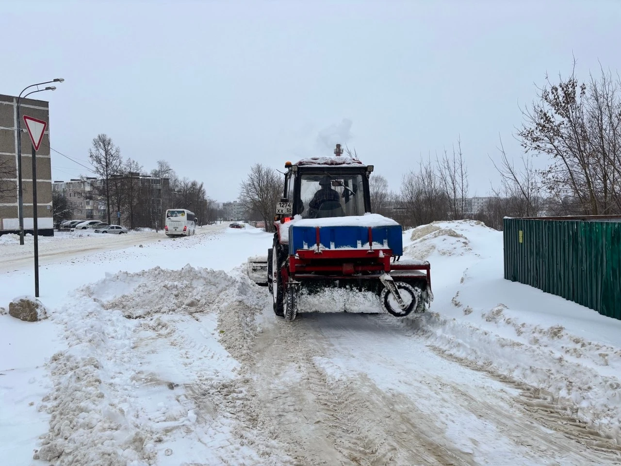 С самого утра техника работает и в Озёрах, убирая снег с дорог, остановок общественного транспорта и тротуаров. Накануне вечером произведена уборка снега и посыпка пескосоляной смесью в Андреевке, Непецино, Городищах, поселке Возрождение. Работают 55 единиц техники и 44 пеших специалиста.