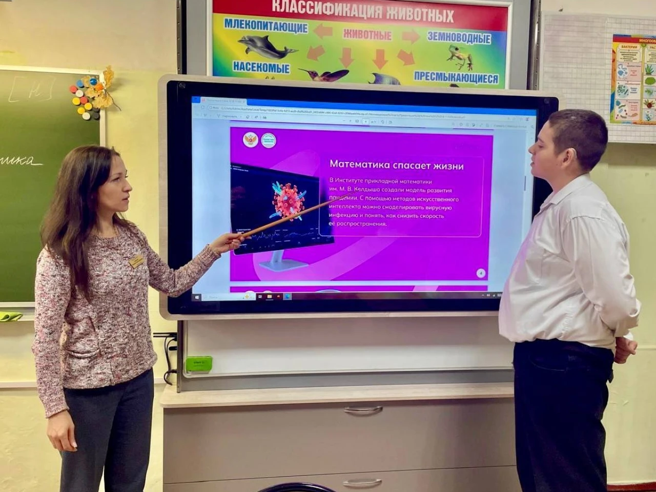Участники просмотрели видеоматериалы об истории отечественной математики, познакомились с достижениями российских ученых и профессиями будущего, где математическая подготовка является ключевой.